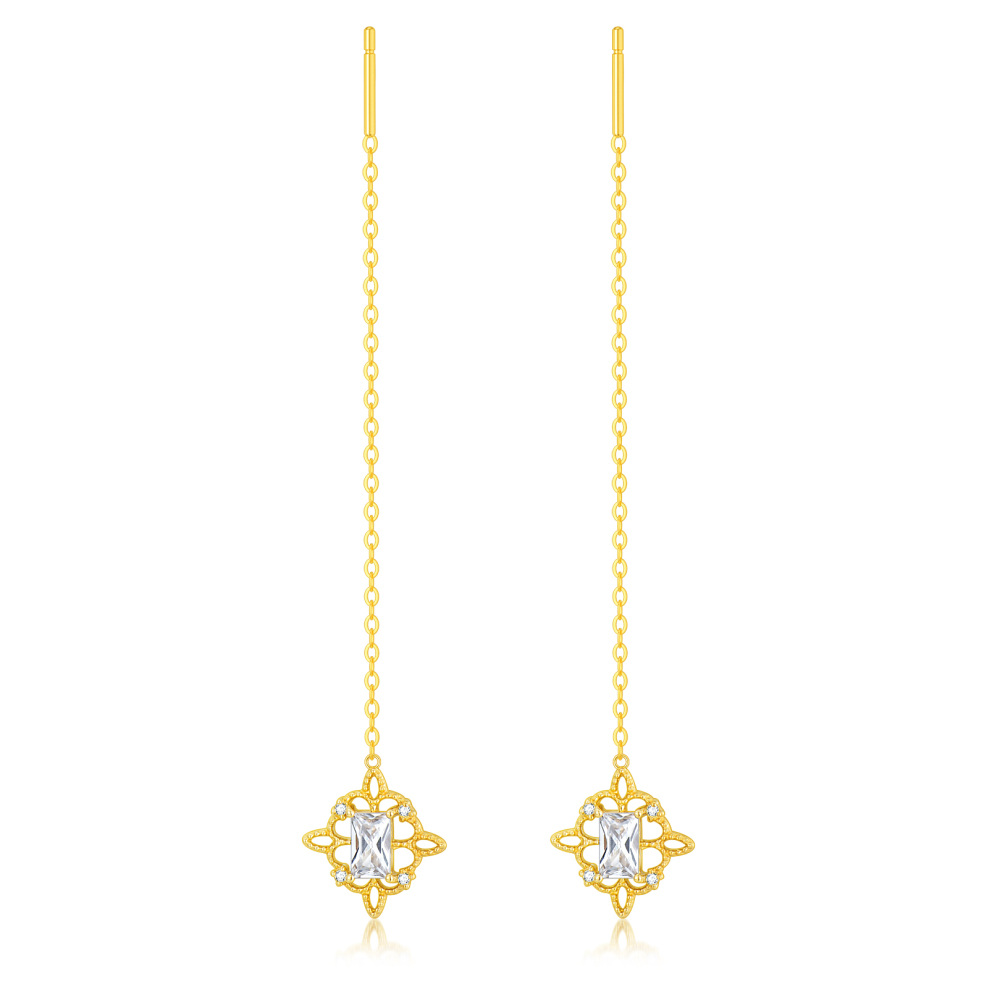 Scopri i nostri eleganti orecchini pendenti in oro 10K, splendidamente realizzati con motivi di nodi celtici e zirconia cubica a forma di quadrato per un raffinato tocco alla tua collezione di gioielli.