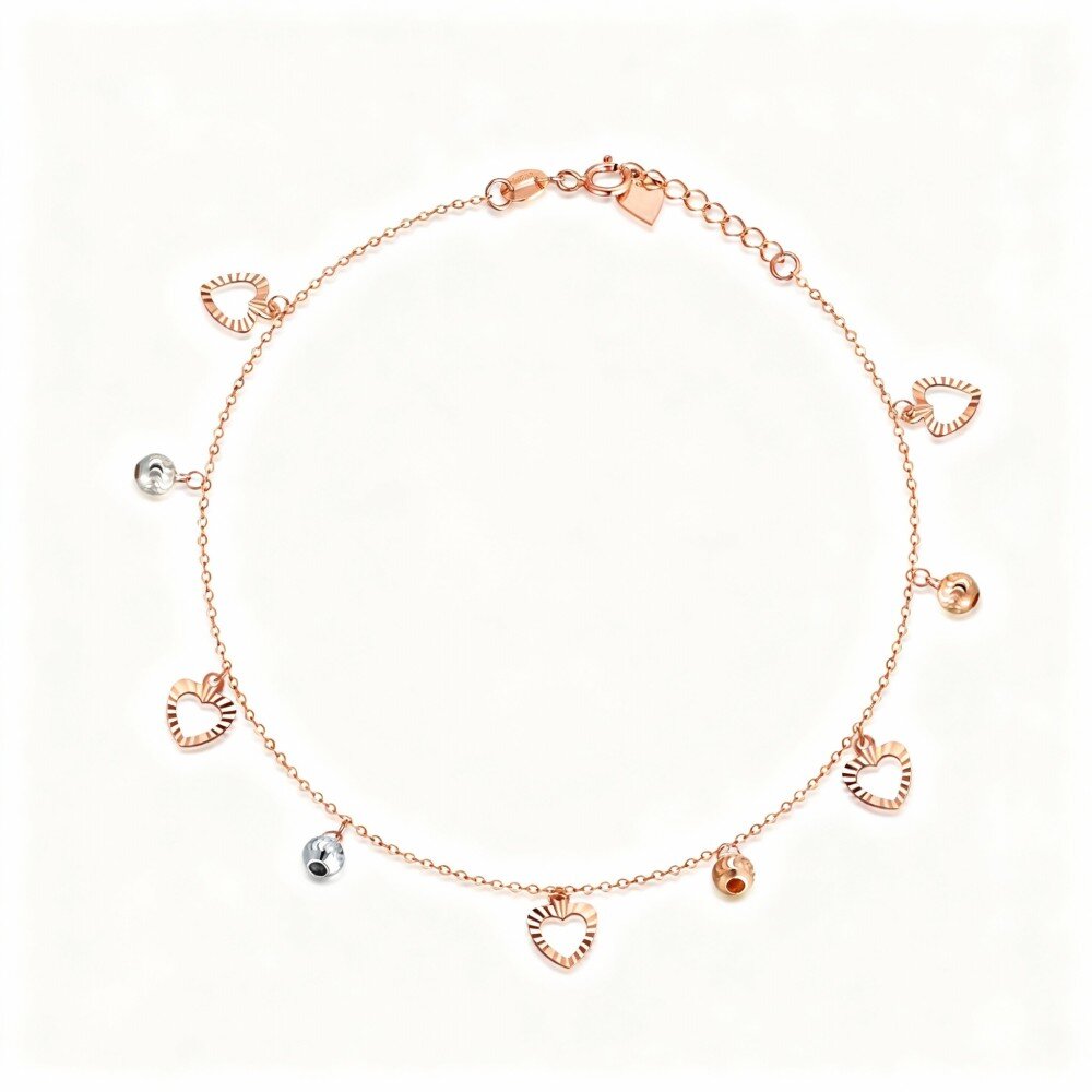 Scopri il tuo fascino con la nostra squisita cavigliera in Oro Rosa 10K con motivo a cuore, progettata per donne alla moda.