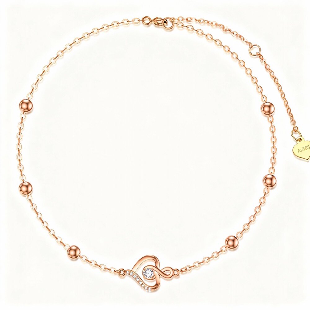 Il nostro squisito bracciale in Oro Rosa 10K combina magnificamente eleganza e simbolismo sincero, progettato per la donna moderna che apprezza sia lo stile che il significato.
