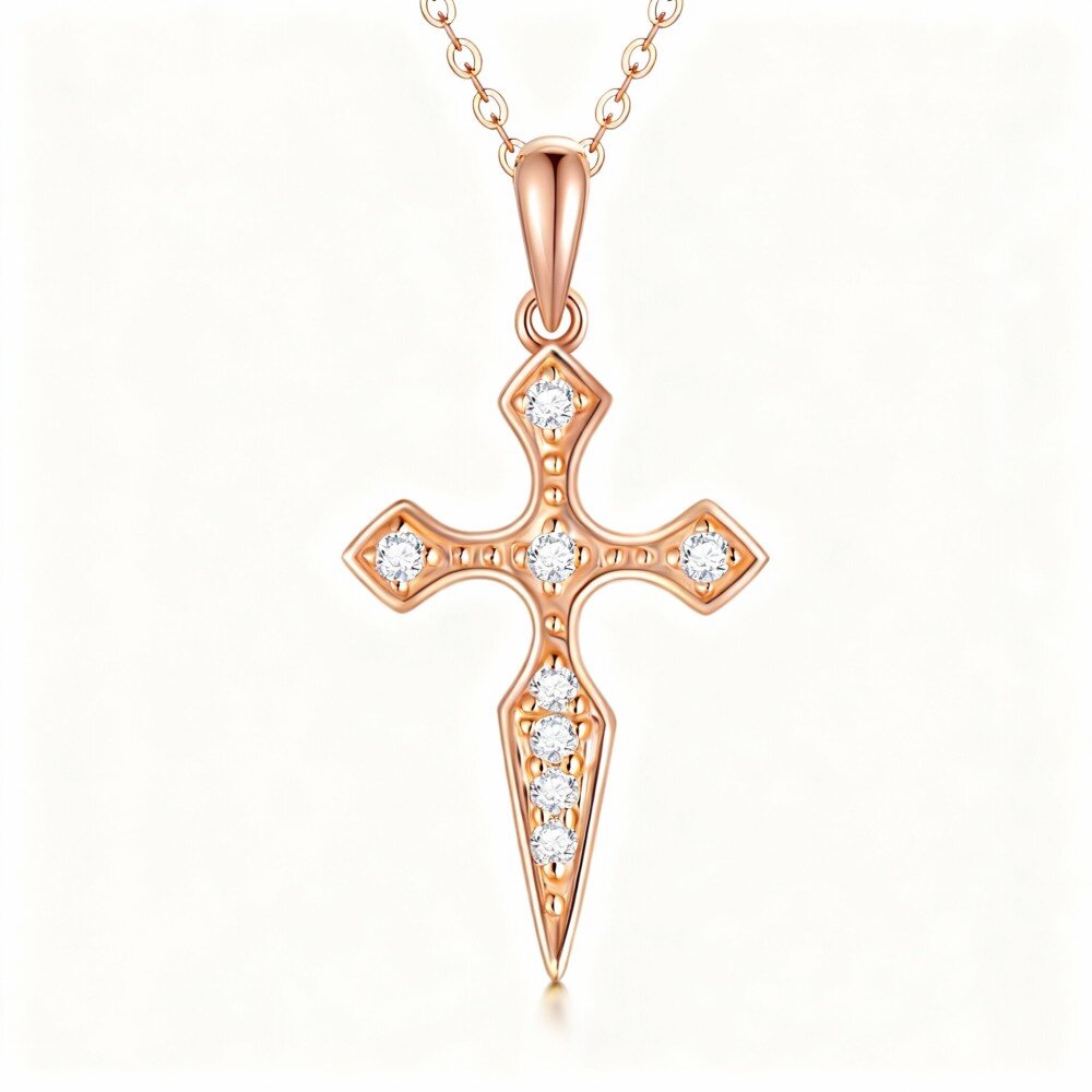 Scopri la bellezza della nostra collana con pendente a croce in Oro Rosa 10K, caratterizzata da zirconia cubica squisita che irradia eleganza e fascino.
