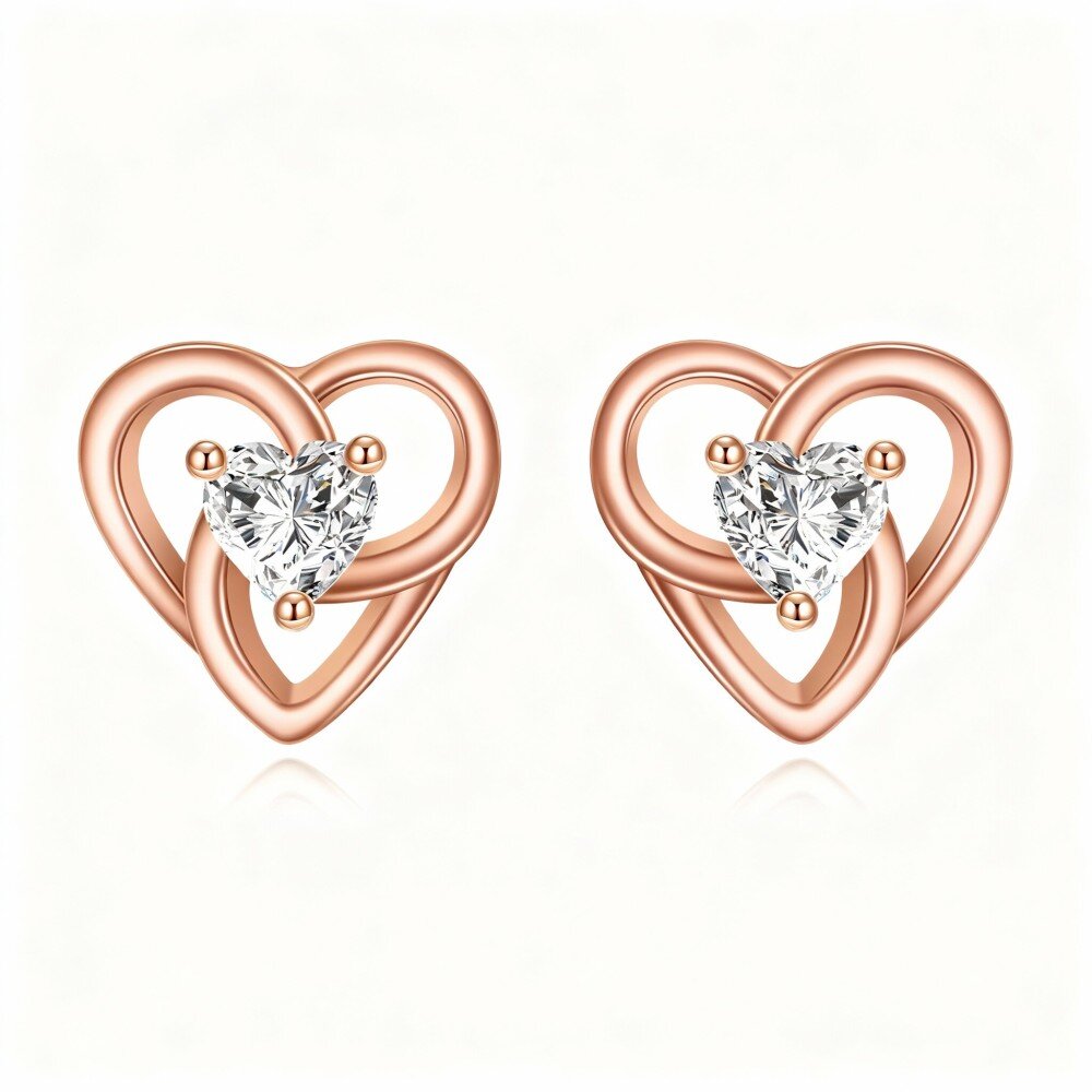 Scopri il fascino dei nostri Orecchini a Perno a Forma di Cuore in Oro Rosa 10K, progettati per donne che adorano eleganza e stile.
