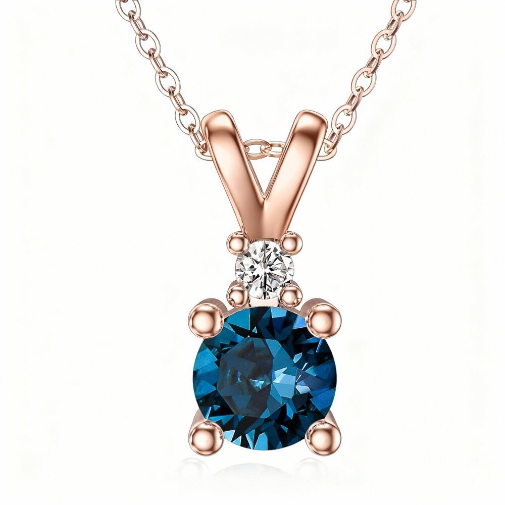 Eleva il tuo stile con la nostra splendida collana a pendente in Oro Rosa 10K, che presenta un brillante Moissanite e un topazio per donne che adorano l'eleganza.