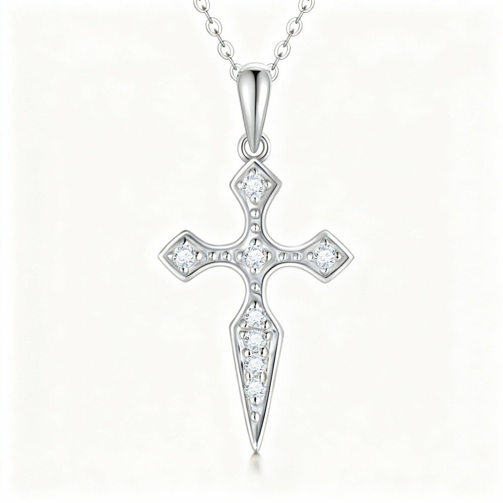 Scopri la bellezza della nostra collana con pendente a croce in Oro Bianco 10K, caratterizzata da zirconia cubica squisita che irradia eleganza e fascino.