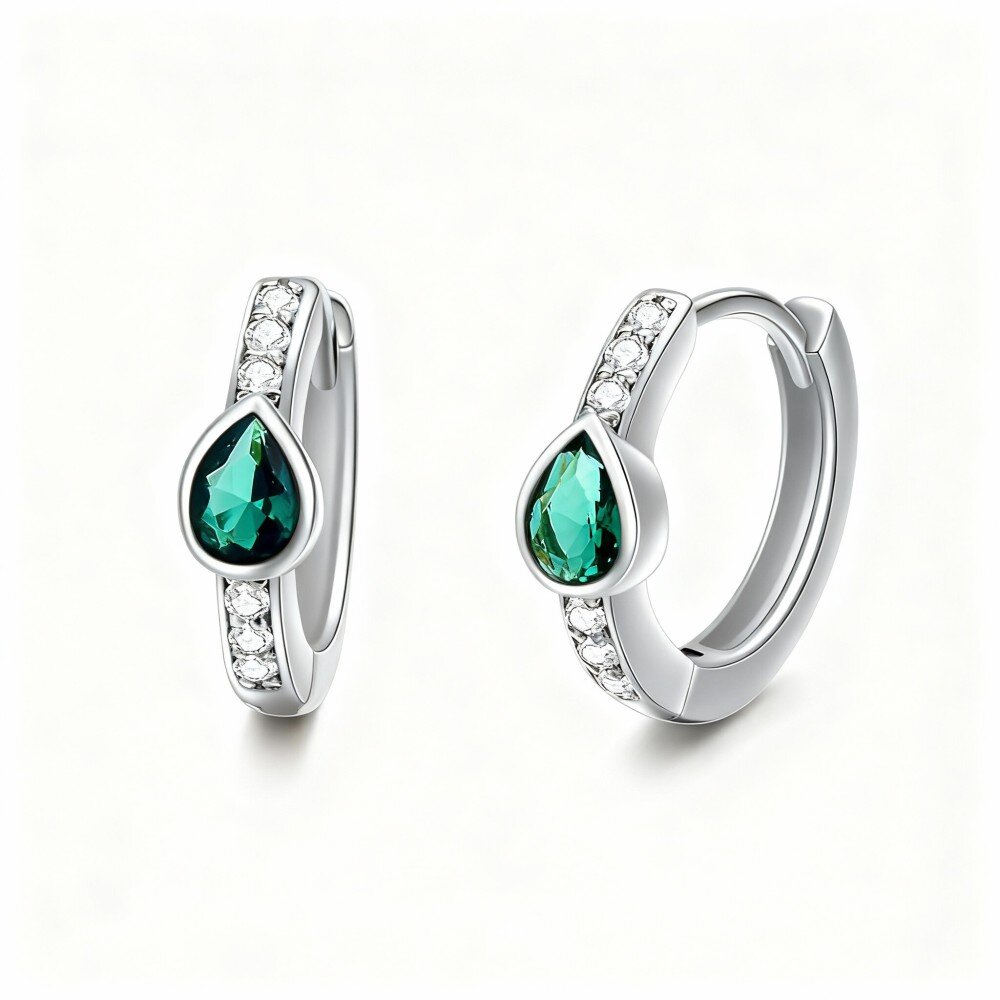 Scopri il fascino dei nostri Orecchini a Cerchio in Oro Bianco 14K, con cubic zirconia ipnotici e gocce di smeraldo eleganti, perfetti per chi ama la sofisticatezza e lo stile.
