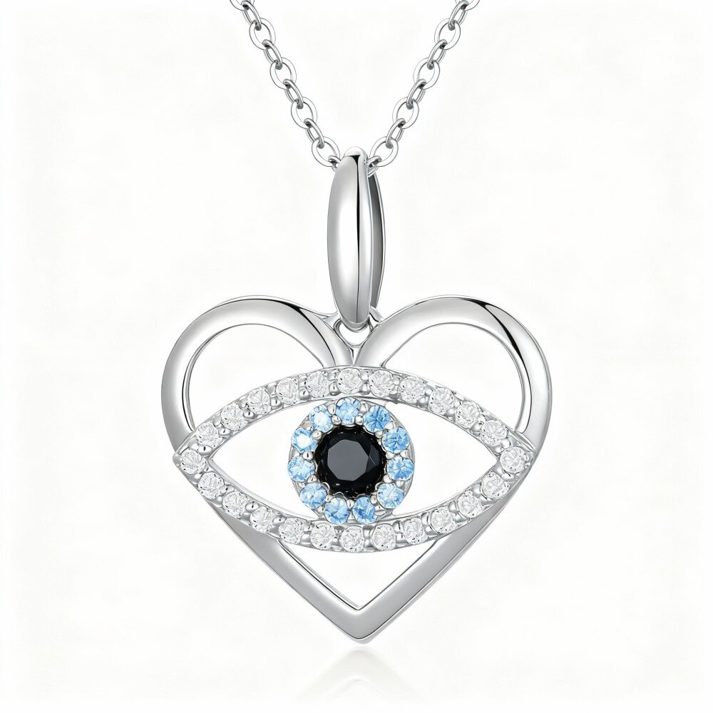 Migliora il tuo stile con la nostra Collana con Pendente in Oro Bianco 10K, caratterizzata da un incantevole motivo a Occhio Maligno e Cuore, perfetta per donne moderne che apprezzano eleganza e significato.