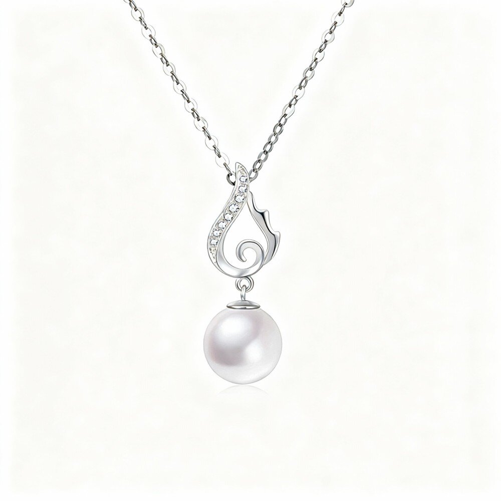 Scopri un mix di eleganza e fascino con la nostra affascinante collana in Oro Bianco 14K con pendente di perla e ala d'angelo.