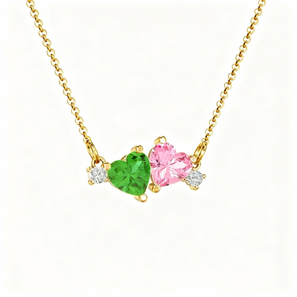 Scopri l'eleganza senza tempo con la nostra collana a cuore in oro 18K, adornata con zirconi cubici luminosi e pietre portafortuna personalizzabili. Perfetta per donne che amano gioielli unici e significativi.