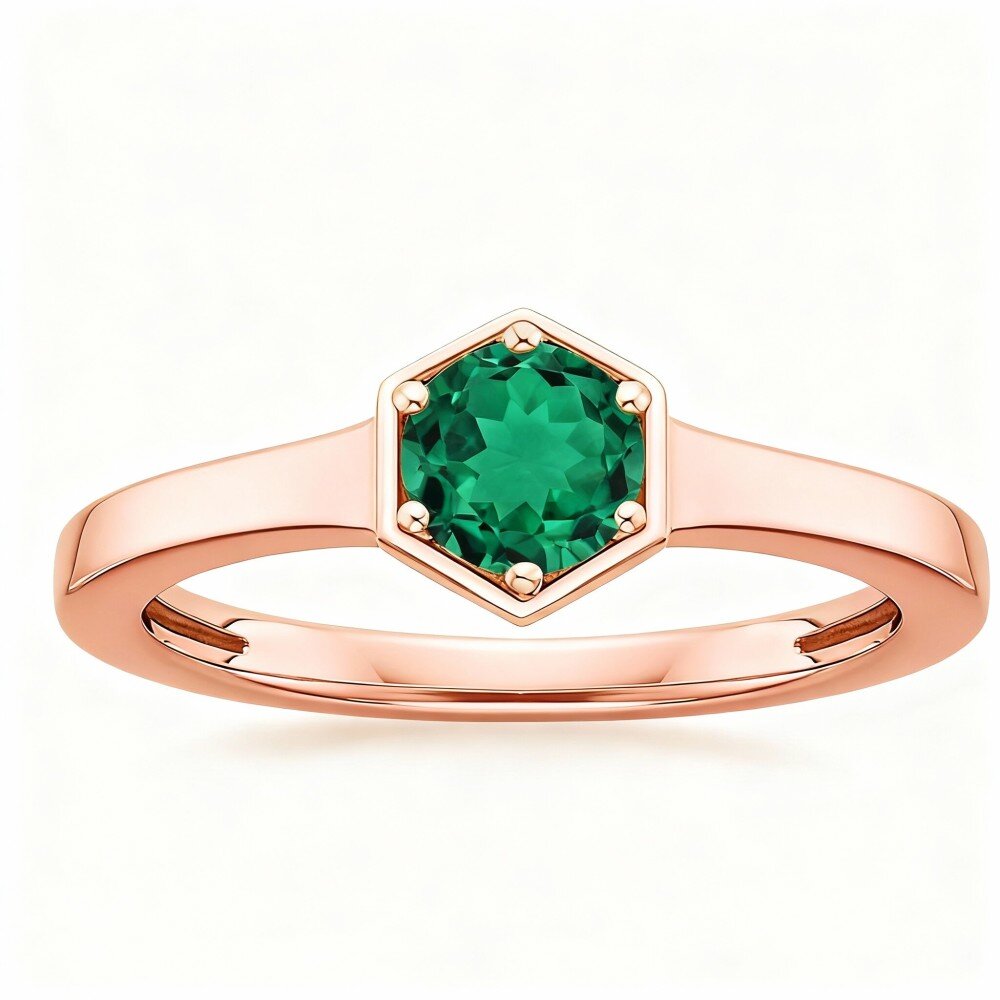 Realizzato in Oro Rosa 18K di prima qualità, questo anello nuziale presenta uno splendido smeraldo lab-grown pentagonale al centro, rappresentando prosperità ed equilibrio emotivo. L'opzione di incisione personalizzata permette alle coppie di aggiungere date significative, iniziali o messaggi, garantendo che ogni anello sia unico come il lOro Rosa legame. Progettato per comfort e bellezza, questo elegante gioiello è un simbolo perfetto di impegno, ideale per fidanzamenti, anniversari o come ricordo duraturo del vostro percorso insieme. Lo smeraldo viva una tonalità verde medio vibrante con limpidezza perfetta, brillando intensamente sotto ogni luce. Creato eticamente e proveniente da fonti sostenibili, questa gemma lab-grown offre qualità eccezionale senza compromessi estetici. La montatura a griffe esalta il suo colore intenso permettendo massima riflessione della luce. Celebra la tua storia d'amore con questa squisita combinazione di lusso, personalizzazione e artigianato etico che sarà custodito per generazioni.