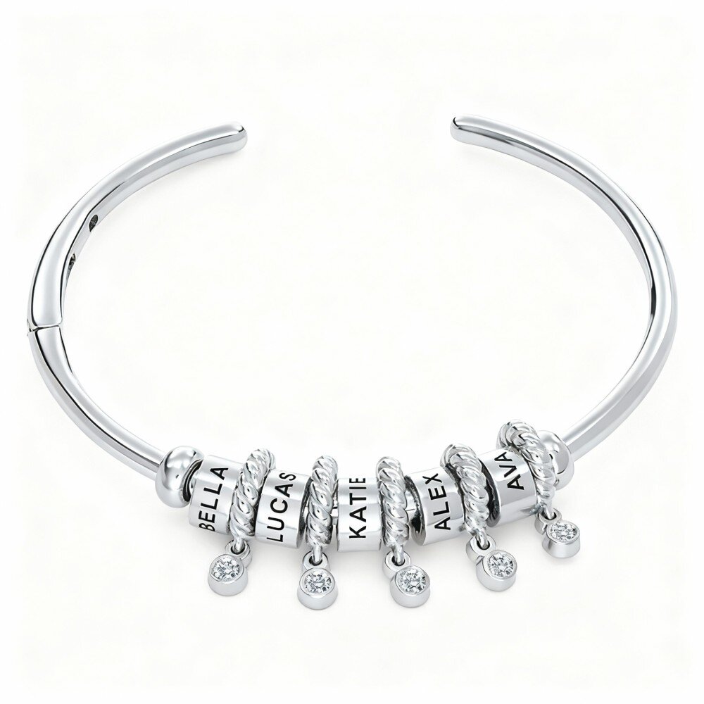 Materiale:Realizzato in placcato Oro Bianco di alta qualità. Decorazione con diamanti: ogni perlina con nome è decorata con uno scintillante diamante da 0,10 CT.